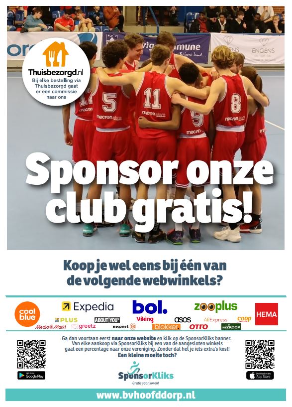 Met SponsorKliks kun je zelf een financiรซle bijdrage leveren aan Basketball Vereniging Hoofddorp, zonder dat het jou een cent extra kost! Zeker met de feestdagen in het verschiet, doe je wellicht tal van online aankopen. Hoe mooi is het dat je daarmee direct de kas van onze vereniging spekt!!Installeer eenvoudig de SponsorKliks App op je telefoon of de SponsorKliks Chrome browser extensie.